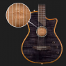 La Bromo BEN2C es una guitarra de hermoso diseño que combina elegancia y funcionalidad. Imagínese tener en sus manos una guitarra con un cuerpo hueco y un diseño con corte, que no solo mejora el acceso a los trastes altos, sino que también minimiza el peso, lo que la hace cómoda para tocar durante períodos prolongados. La tapa está hecha de abeto enchapado con okoume flameado de 5A, lo que proporciona una base tonal fuerte y rica.Una de las características más destacadas de la BEN2C es su sistema patentado de refuerzo Tone-Flow. Este sistema garantiza la robustez del cuerpo a la vez que mejora la resonancia, lo que permite que la guitarra amplifique las vibraciones en toda su estructura. Este diseño avanzado mejora el espectro tonal, ofreciendo características de sonido más ricas y matizadas para una experiencia auditiva superior.El mástil del BEN2C está fabricado con caoba resistente, lo que garantiza una durabilidad y una fiabilidad extraordinarias. El perfil del mástil en "C" es famoso por su comodidad y estabilidad, ya que proporciona un excelente soporte para la palma y reduce la fatiga durante las sesiones prolongadas. Los clavijeros chapados en oro de estilo vintage combinan un diseño ligero, una gran precisión y un atractivo estético, y presentan el logotipo de Bromo y patrones artísticos grabados en las clavijas de afinación.El Binding de la BEN2C está fabricado con materiales como el ABS, lo que demuestra las mejores técnicas interpretativas en la fabricación . El puente, fabricado con ébano Amara de primera calidad, ofrece tonos claros y equilibrados al tiempo que garantiza un excelente sustain y resistencia a la humedad para una estabilidad de afinación.